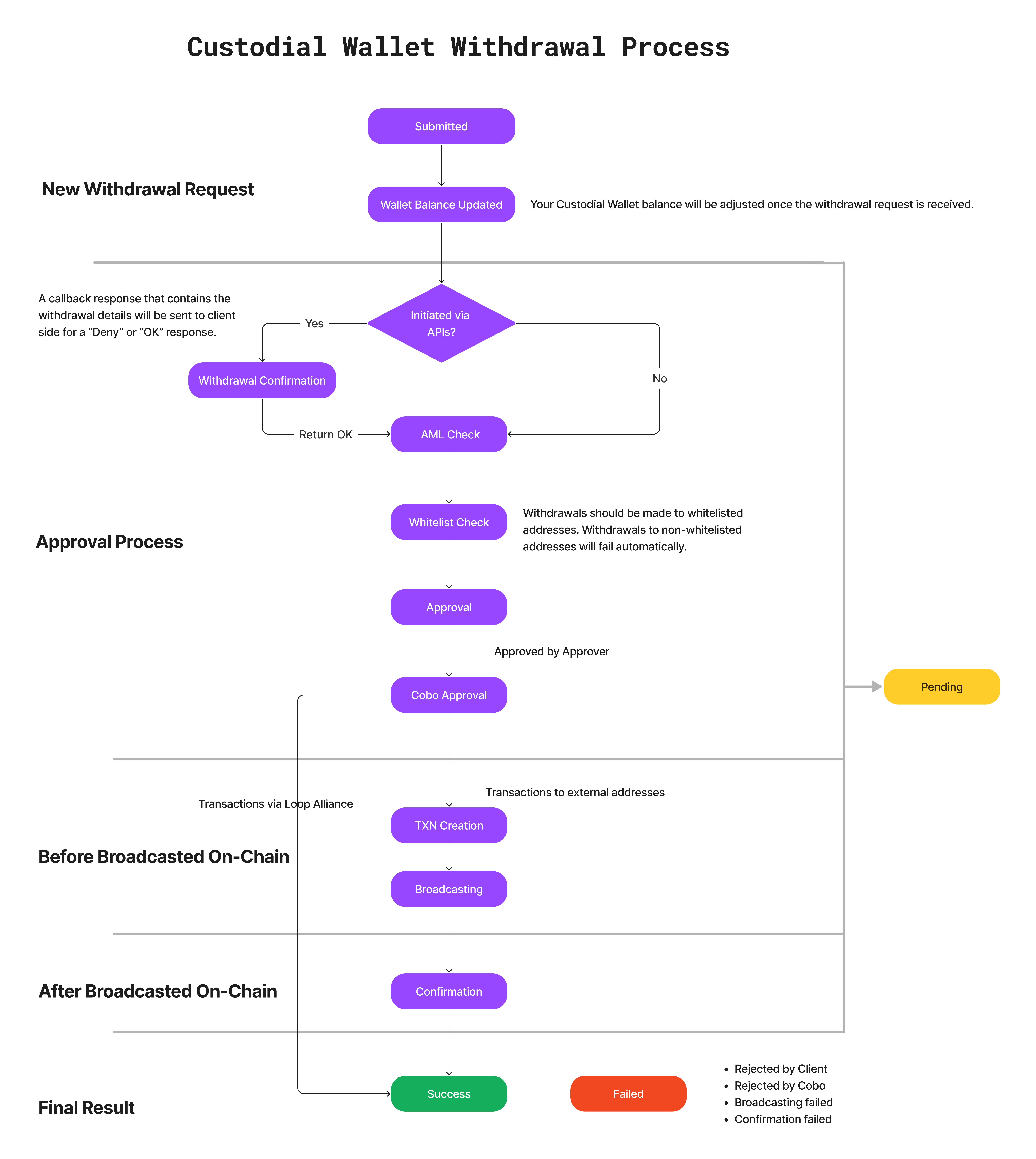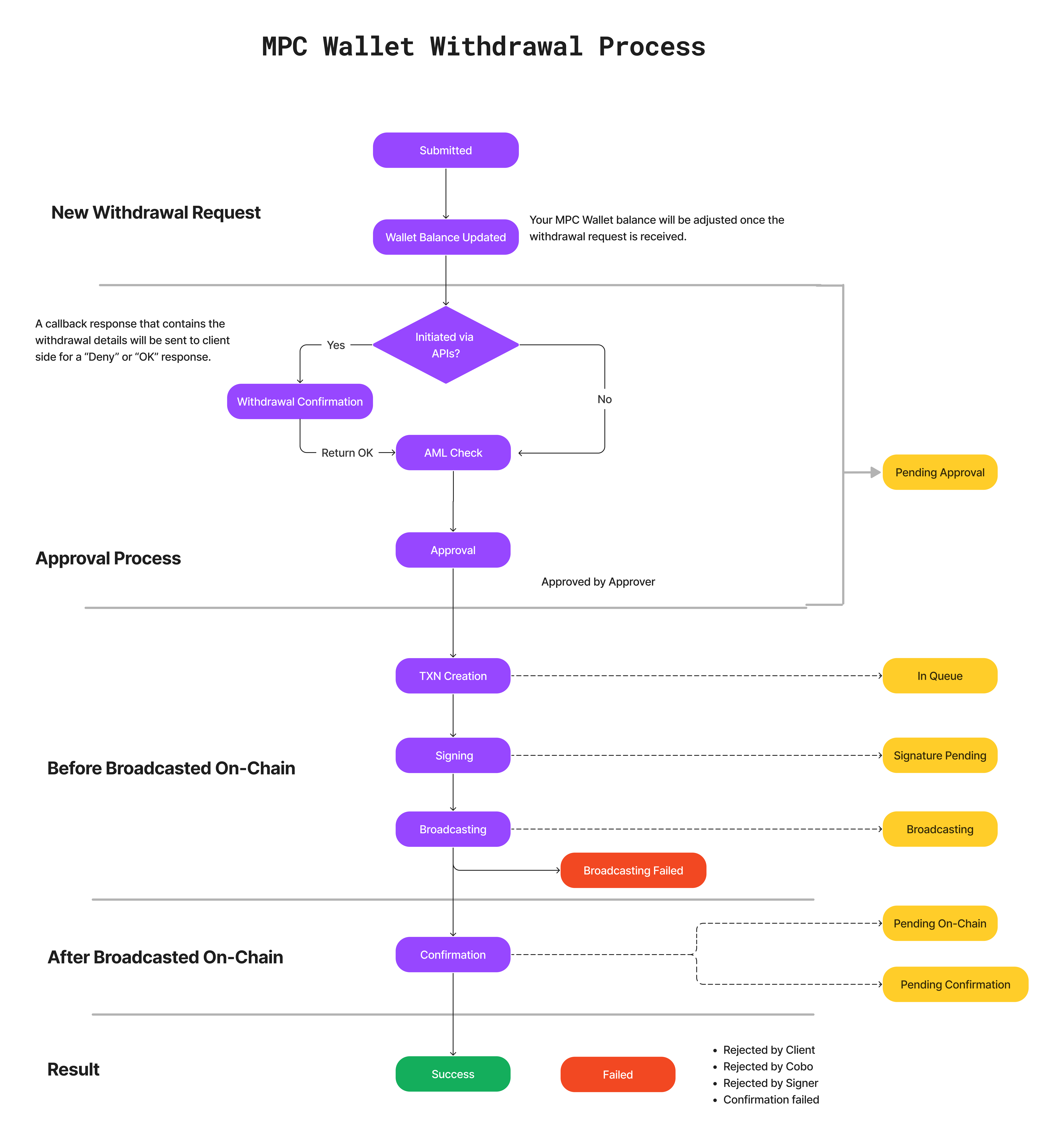 Withdraw process for Custodial Wallets and MPC Wallets: