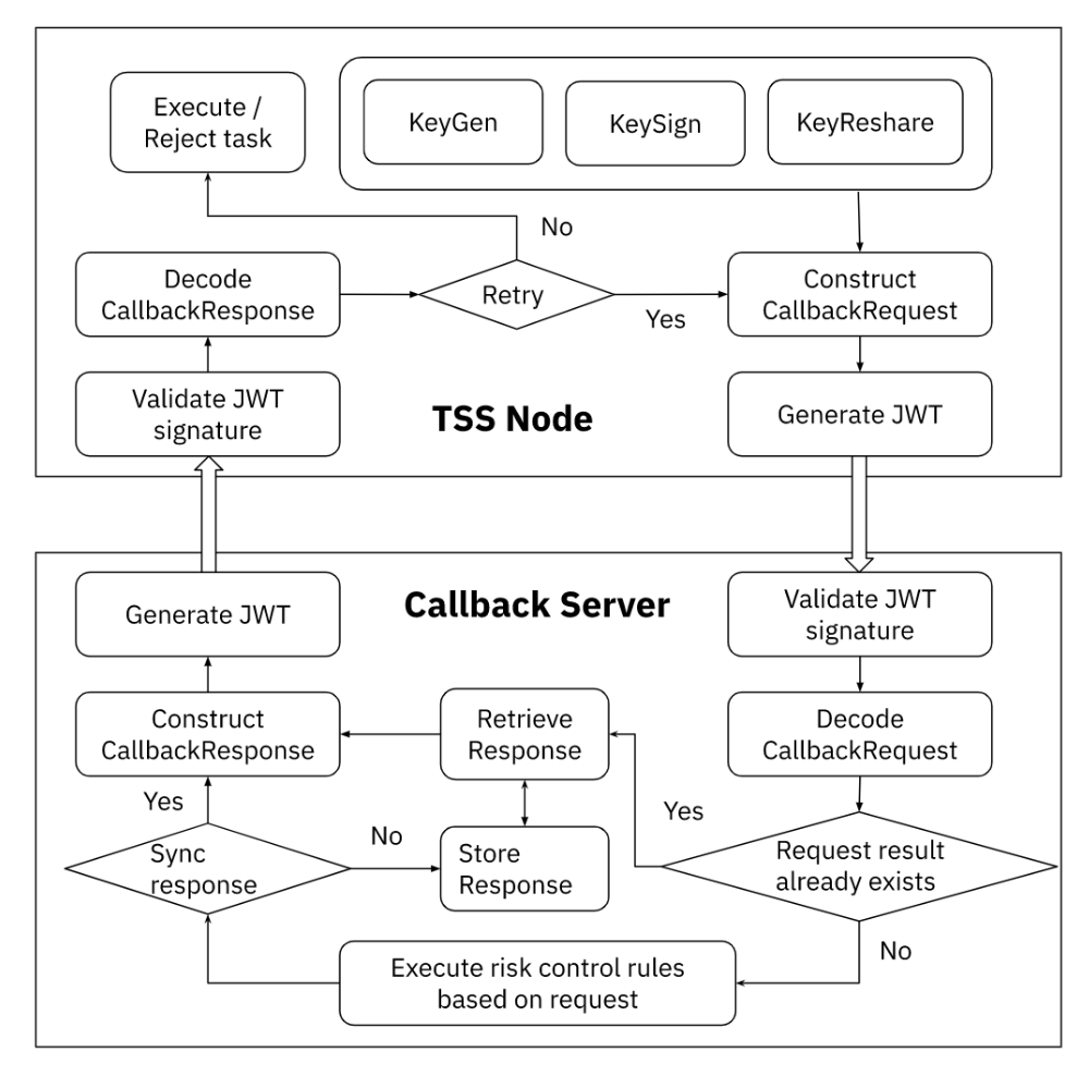 - The callback server will construct CallbackRequest and sign it using its RSA private key before sending the JWT back to the TSS Node
